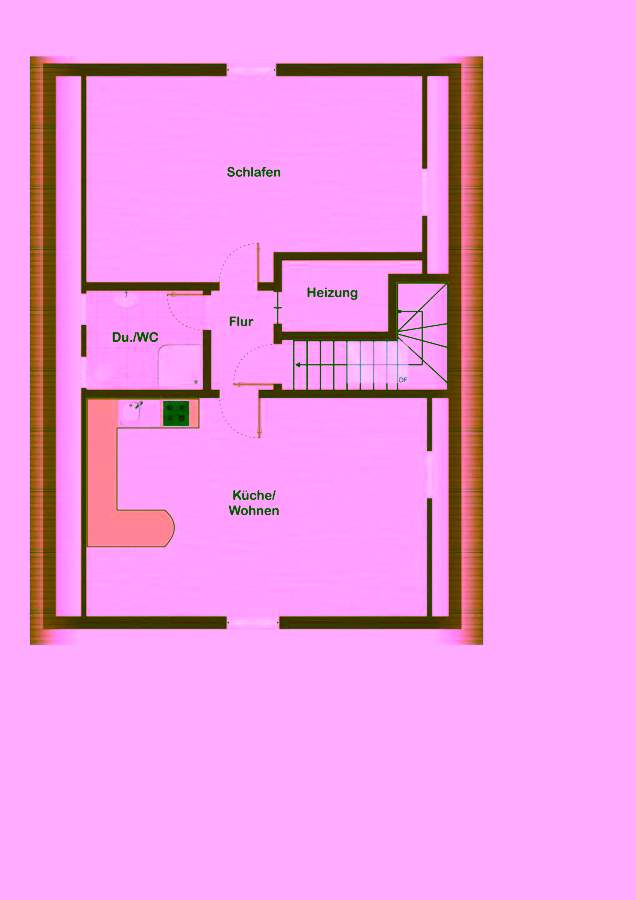 Das Dachgeschoss beherbergt ein hübsches Apartment, das durch seine gemütliche Atmosphäre besticht. Es verfügt über ein Schlafzimmer, einen offenen Wohn-Essbereich mit moderner, voll ausgestatteter Küche sowie einem Bad mit Dusche und WC. Perfekt für Gäste zur Ferienvermietung oder als Rückzugsort.