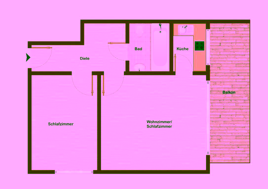 Wohnfläche: Optimal geschnitten, ideal für Singles oder Paare.