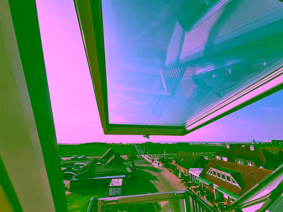 In der oberen Etage befinden sich zwei lichtdurchflutete Zimmer mit Küche und einem Ausstellbalkon mit direktem Blick auf das Meer und die Inseln. Außerdem ein Bad mit Fenster.